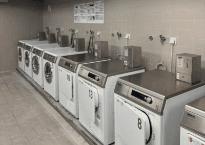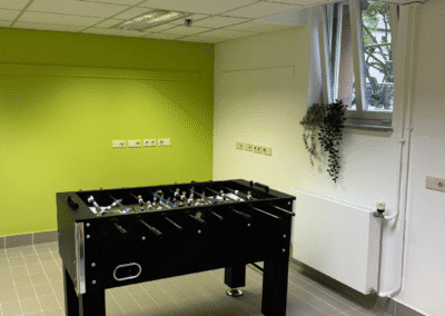 Das Gebäude bietet Platz für 68 Personen. Die voll möblierten Studios sind zwischen 16 und 18 Quadratmeter groß und verfügen jeweils über ein Badezimmer, das sich zwei Bewohnergruppen teilen. Neben drei Etagen mit Wohnstudios gibt es im Untergeschoss zahlreiche Seminarräume, Waschräume und weitere Gemeinschaftsflächen – denn das Miteinander steht hier im Mittelpunkt.