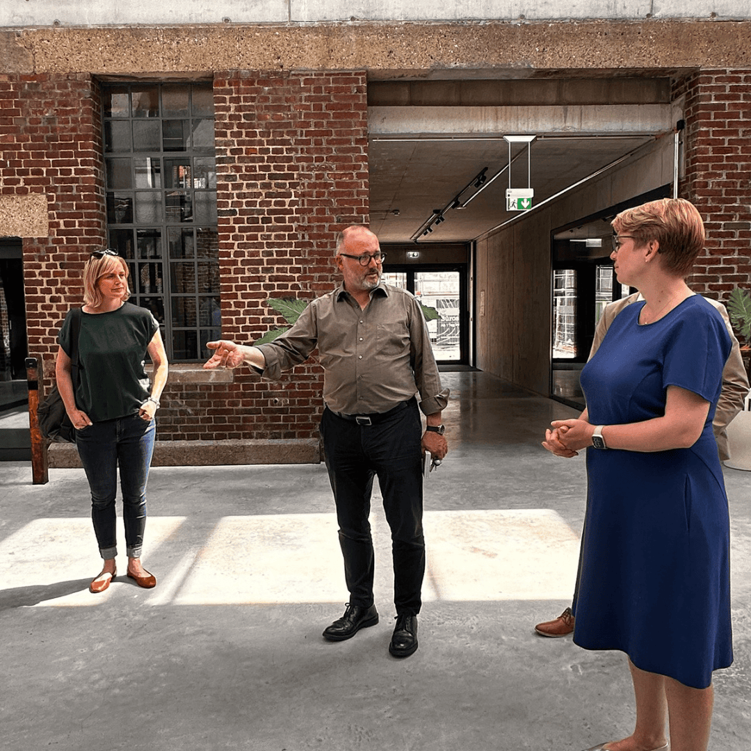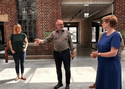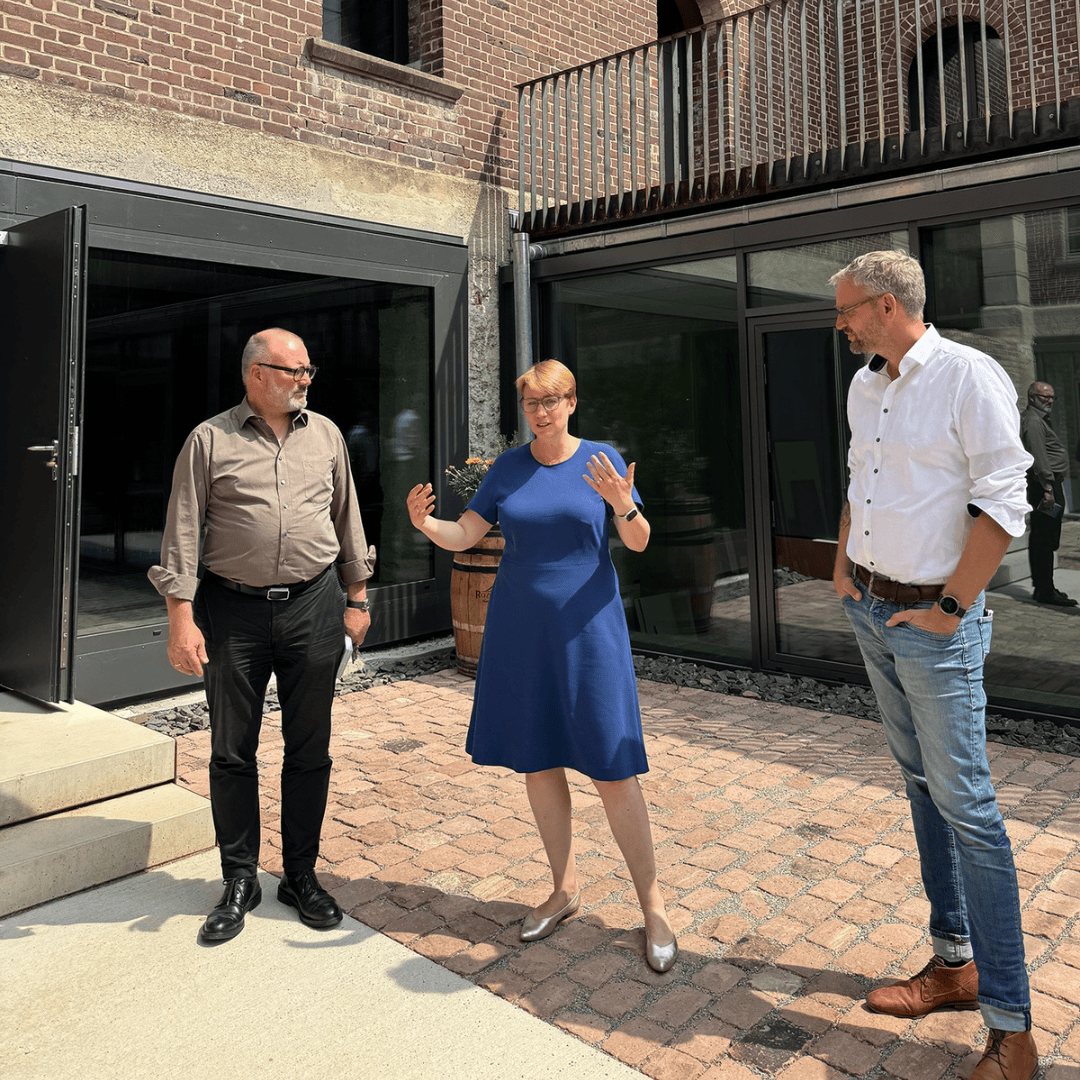 Am Mittwoch war Staatssekretärin Andrea Lindlohr MdL im Rahmen ihrer Sommertour „Nachhaltig Bauen in Baden-Württemberg“ zu Besuch in Heidelberg, um das Bahnbetriebswerk als Best Practise zu diesem Thema zu besichtigen. Interessante Einblicke gaben Armin Schäfer vom Architekturbüro aag u.a. in das „66 Millionen Projekt“, das mit seiner Nutzungsmischung ein struktur-prägender Ort, attraktiver Treffpunkt und zugleich authentischer Alltagsort für Arbeit, Kultur und Kunst wird – eine absolute Bereicherung für Heidelberg!